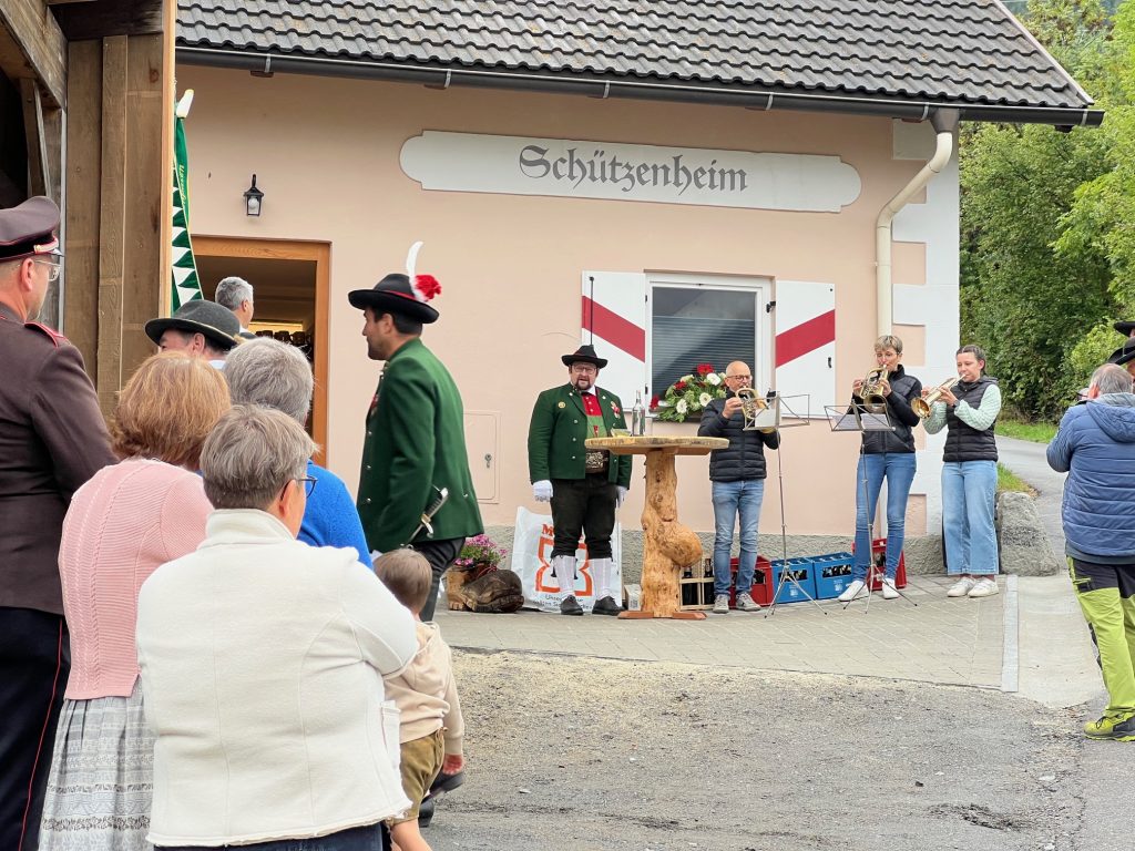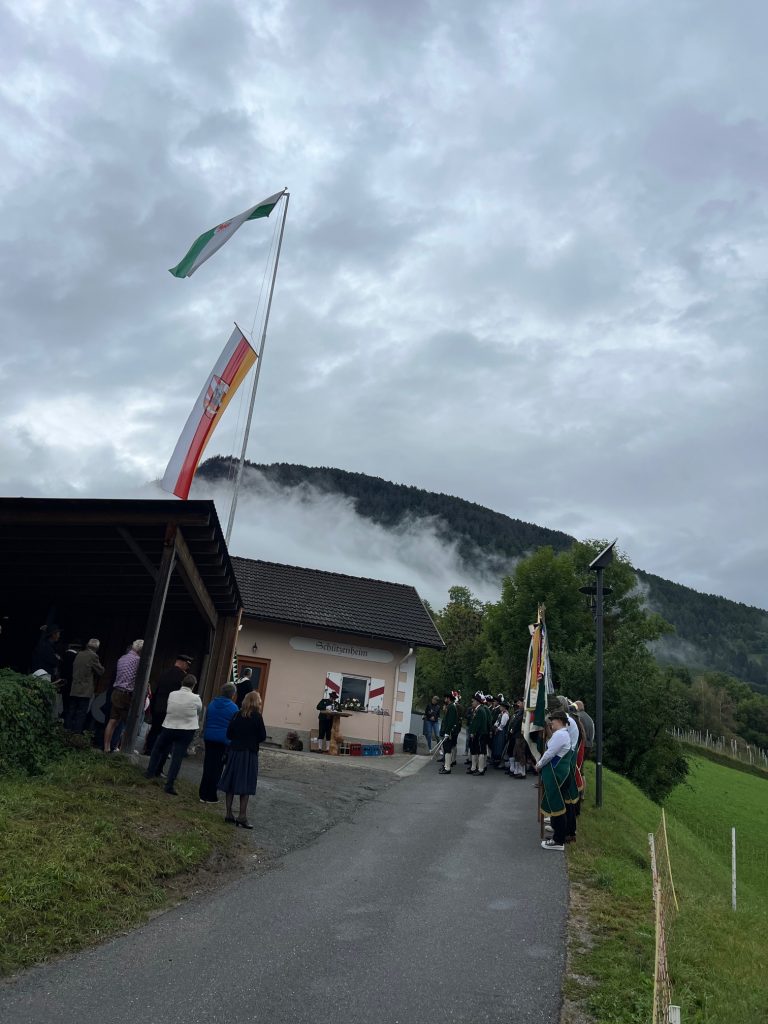 Anlässlich der Einweihung des neuen Schützenheims unseres Patenvereins, der Schützenkompanie Prad, am 30.08.2025 war unsere Böllergruppe zu Gast in Prad. Nach der Begrüßung und der Ansprache des Hauptmanns der Schützenkompanie, Alfred Theiner, folgte die feierliche Segnung durch den Pfarrer.