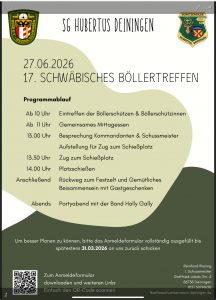 Das 17 Schwäbische Böllerschützentreffen findet 2026 in Deiningen bei Nördlingen statt.