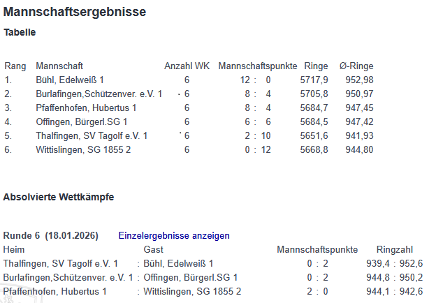 Am Dienstag, 13. Januar, traten der Tabellen-Zweite Burlafingen und der Tabellen-Vierte Offingen zum Rundenwettkampf im Schützenheim Burlafingen zum Wettkampf an.